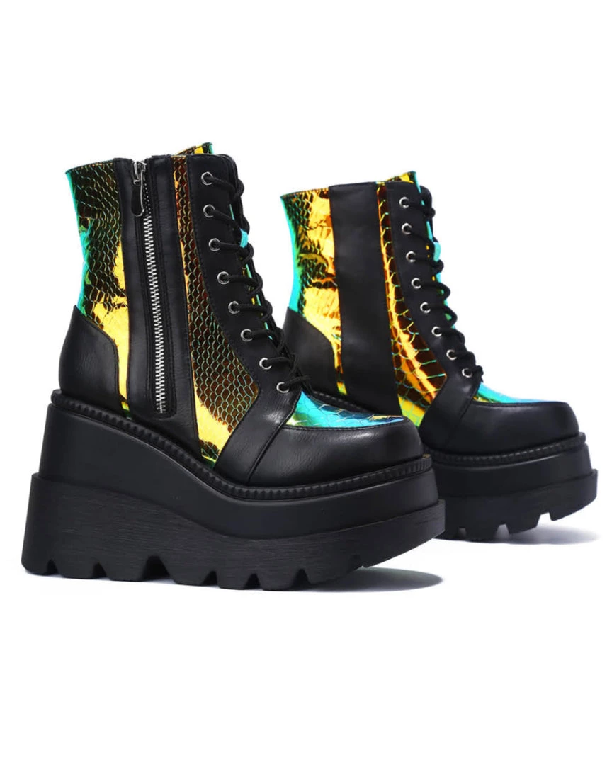 These BADD-A$$ platform boots featuring some amaaazing iridescent snake paneling detail will keep ya steezin all night (& day) long!