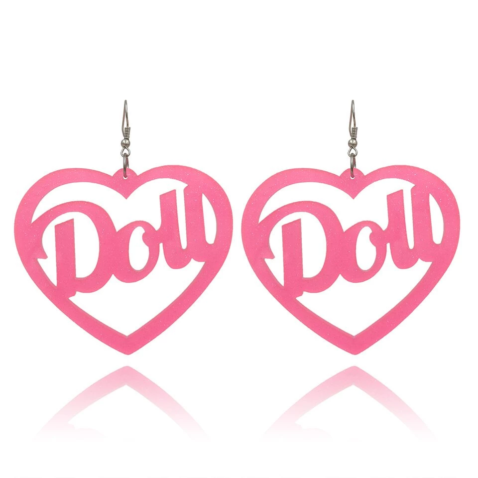 I’ll Be Your Doll Heart Shaped PVC Earrings