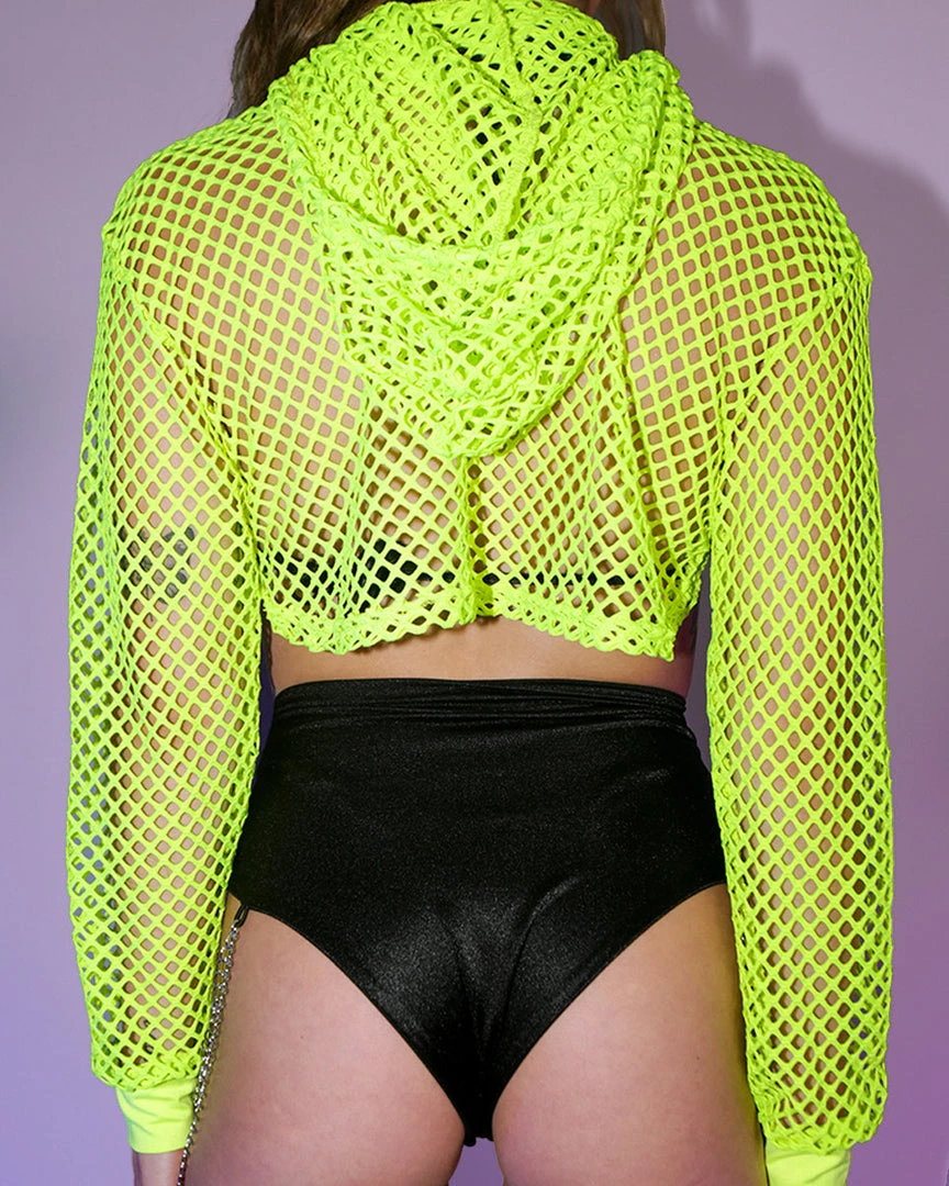 Fishnet Long Sleeve Shrug With Hoodie