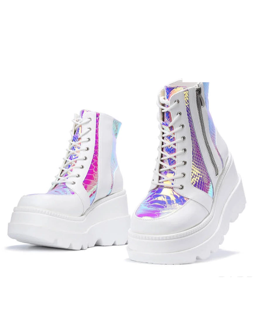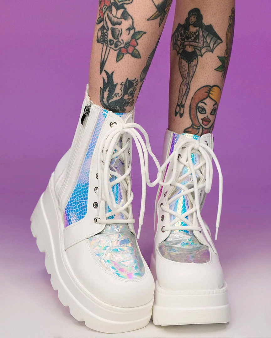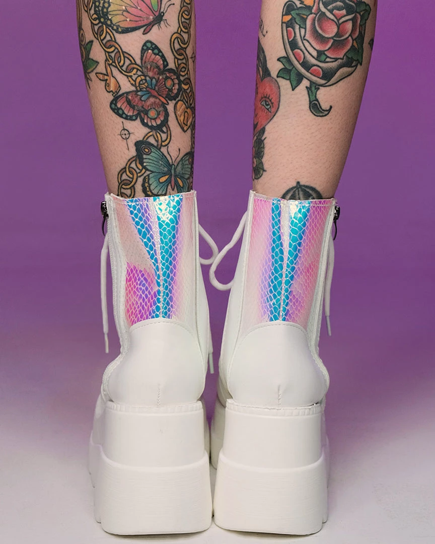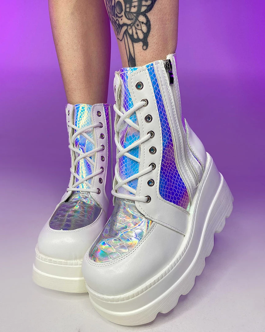 These BADD-A$$ platform boots featuring some amaaazing iridescent snake paneling detail will keep ya steezin all night (& day) long!