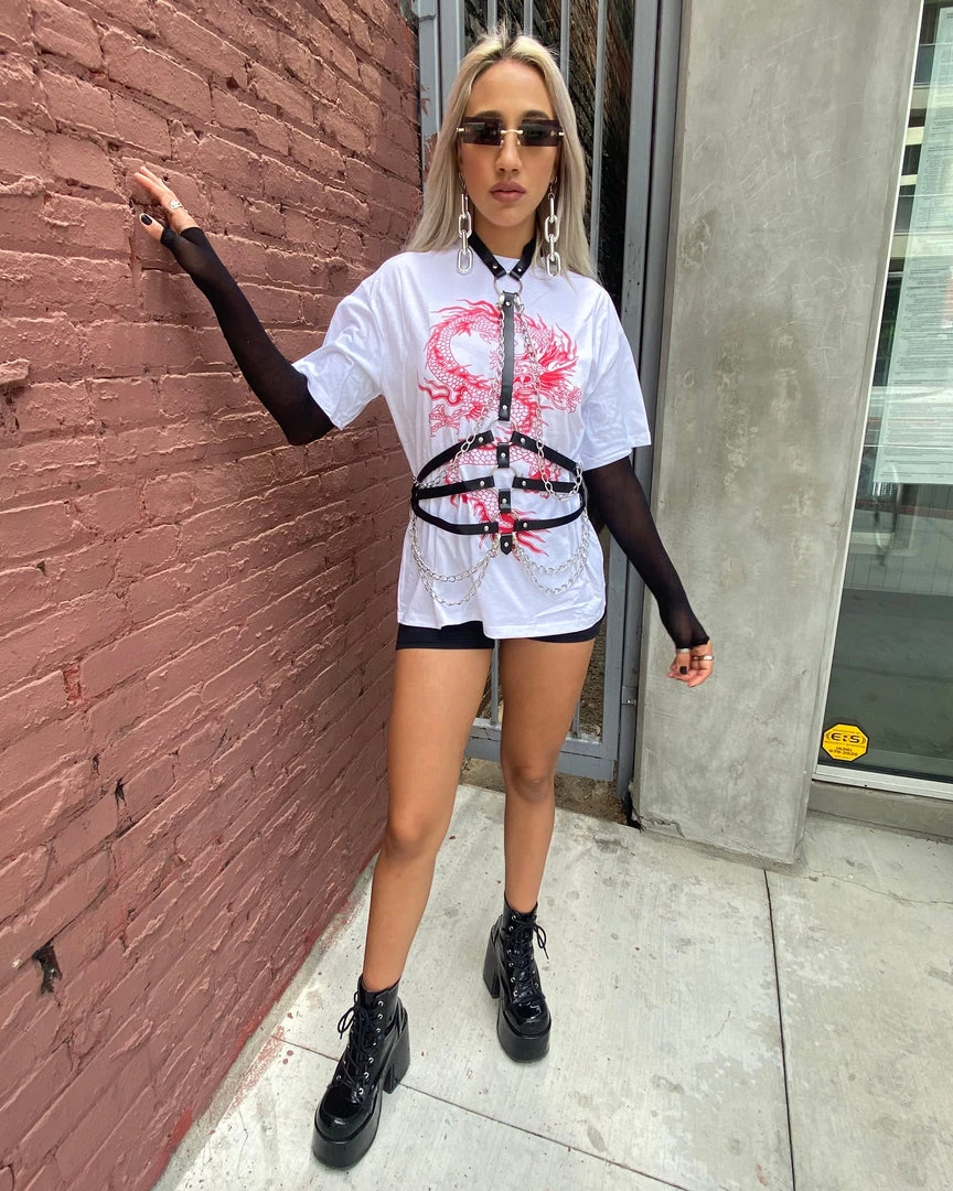 We are. WITH. THIS. VIBE. This harness top adds a lil extra sumthin sumthin to your outfit! One size fits most.  Does not include pasties or undergarments.