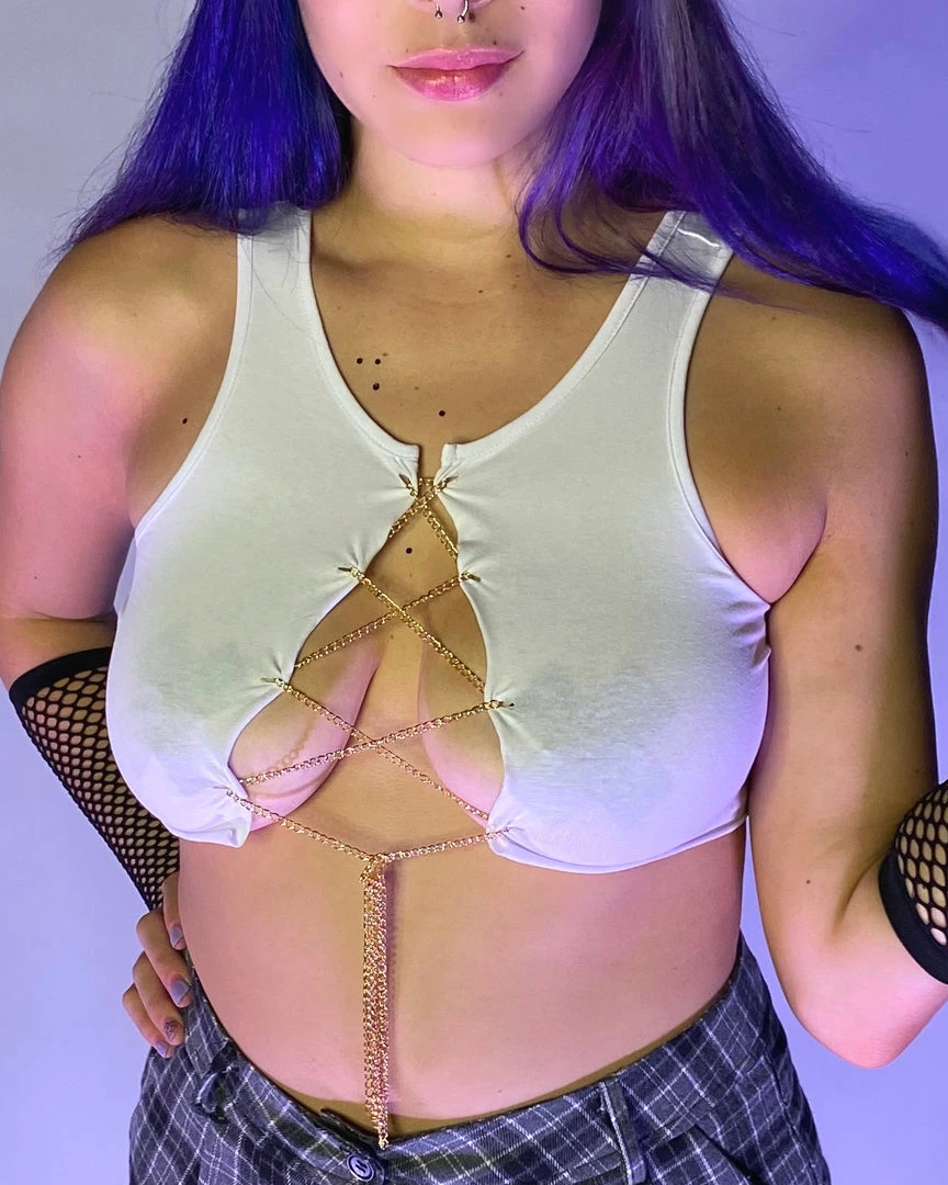 Be the first to review “AE Womens White Peekaboo Chain Tank Top” Cancel reply