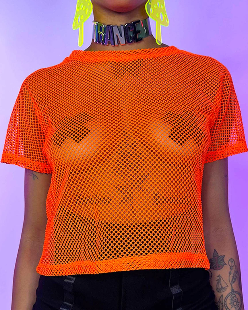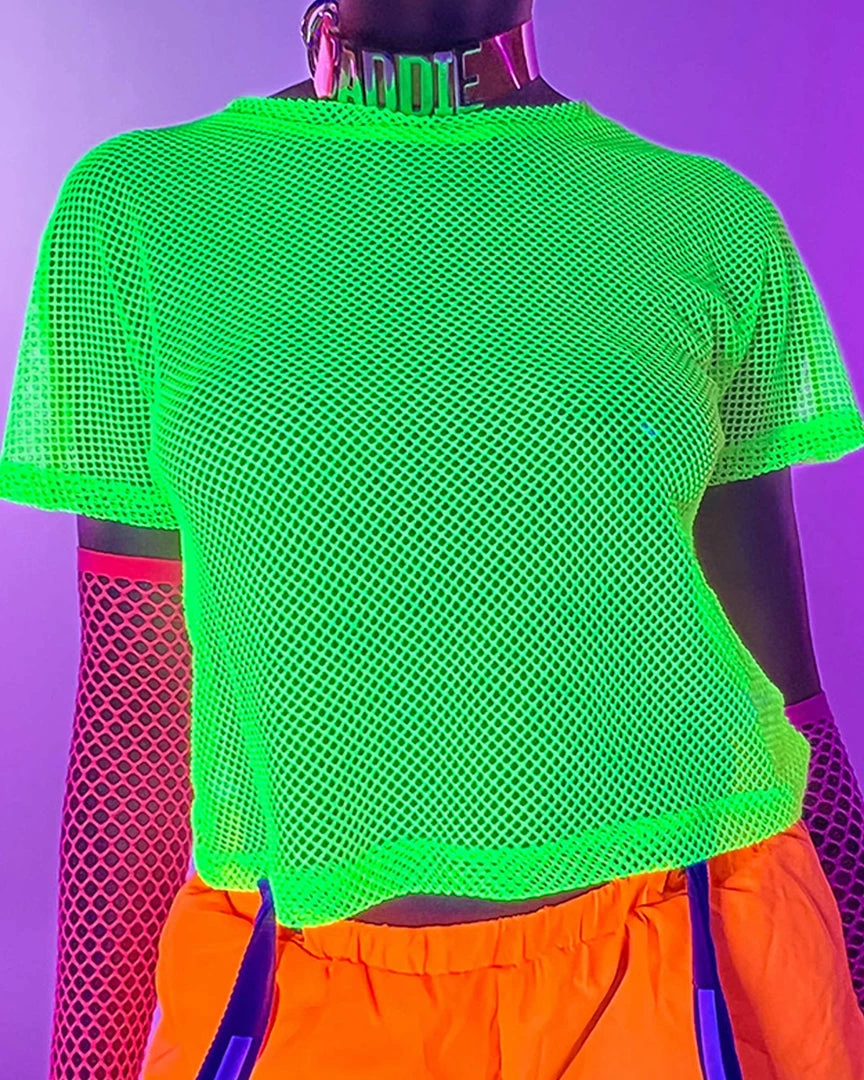 Bear Dance New Basic Fishnet Crop Tee