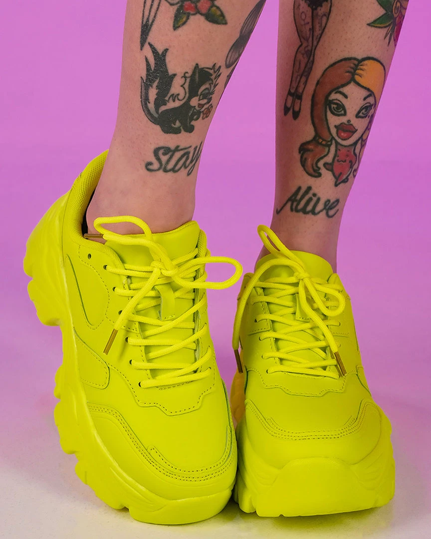 Berness Shoes Womens Neon Yellow Flexx Platform Sneakers