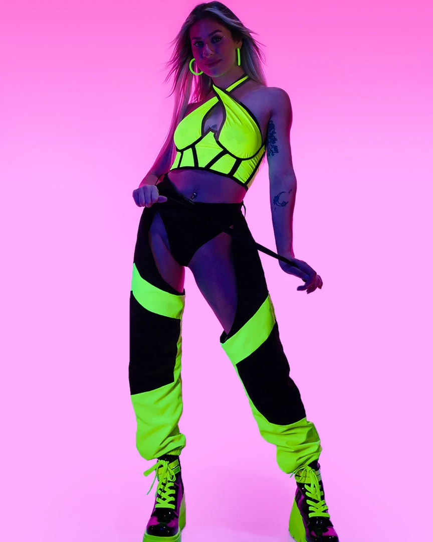 SKU: daisy-s-corsets-6756482089021 Categories: Accessories, Belts X Harnesses, New, Rave Tops, Tops, Womens Tags: Black light, Black light reactive, Blacklight, Green, Lime, Size-l, Under boob top, Underboob