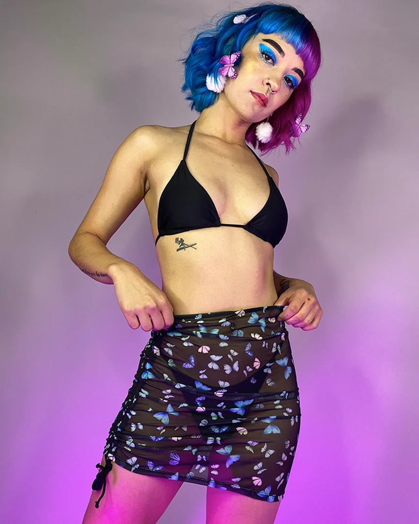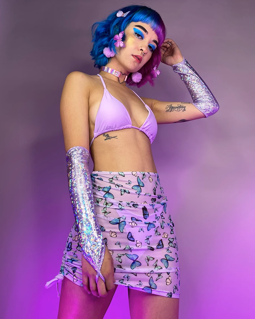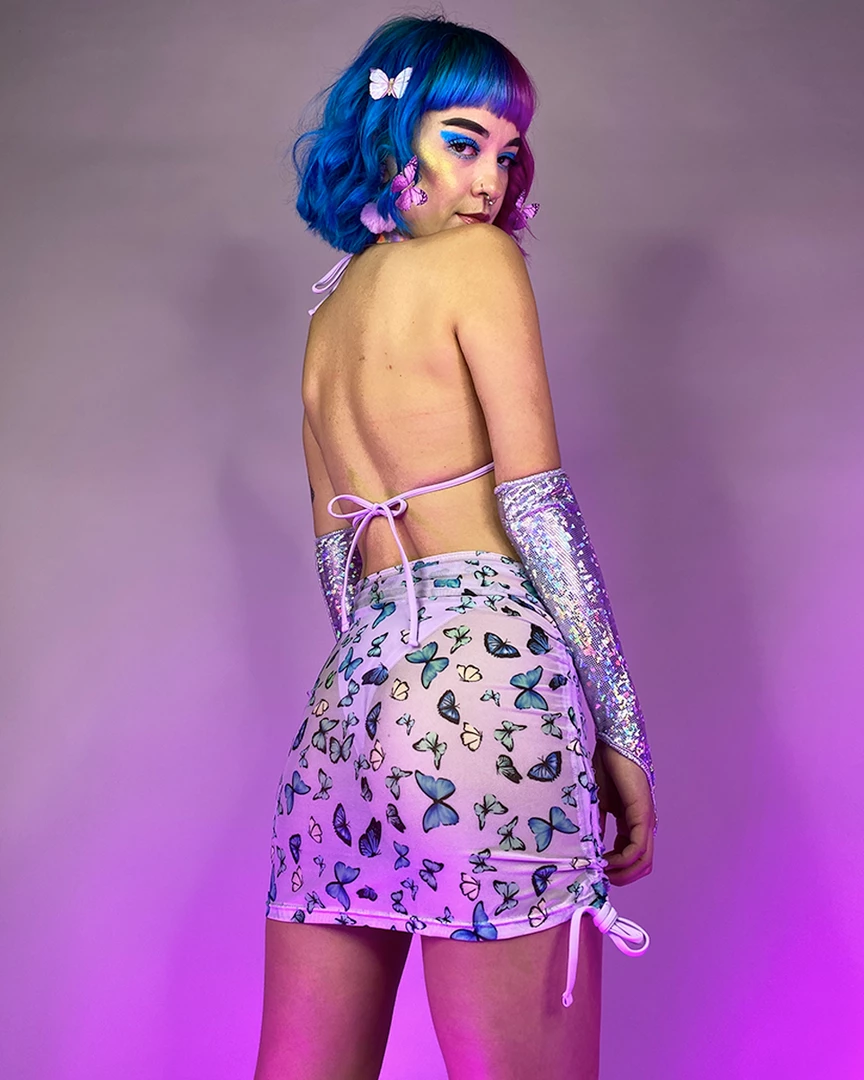 3pc Pastel Butterfly Kingdom Bikini Set w/ Scrunch Skirt