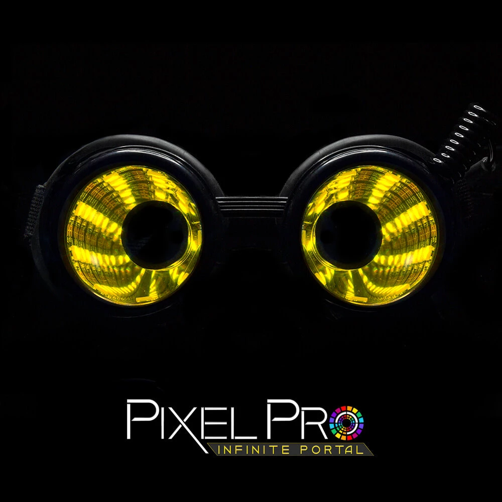 Wearing GloFX Pixel Pro Infinite Portal Goggles not only enhances your visual experience but also transports you to the local carnivals and funhouses of your childhood. The smell of kettle popcorn fills the air, and lights – reds, blues, greens, purples – flash at you from every direction. You step into the hall of mirrors, a disorienting maze of infinite possibilities and confusion. Your family waits outside, and as you wander the halls alone, you can see forever in every direction. You realize just how big everything is! The tunnels leave you in awe and always have. That feeling, that memory, is what these goggles are all about. Let the power of the universe wash over your world with GloFX Pixel Pro Infinite Portal Goggles today.Â