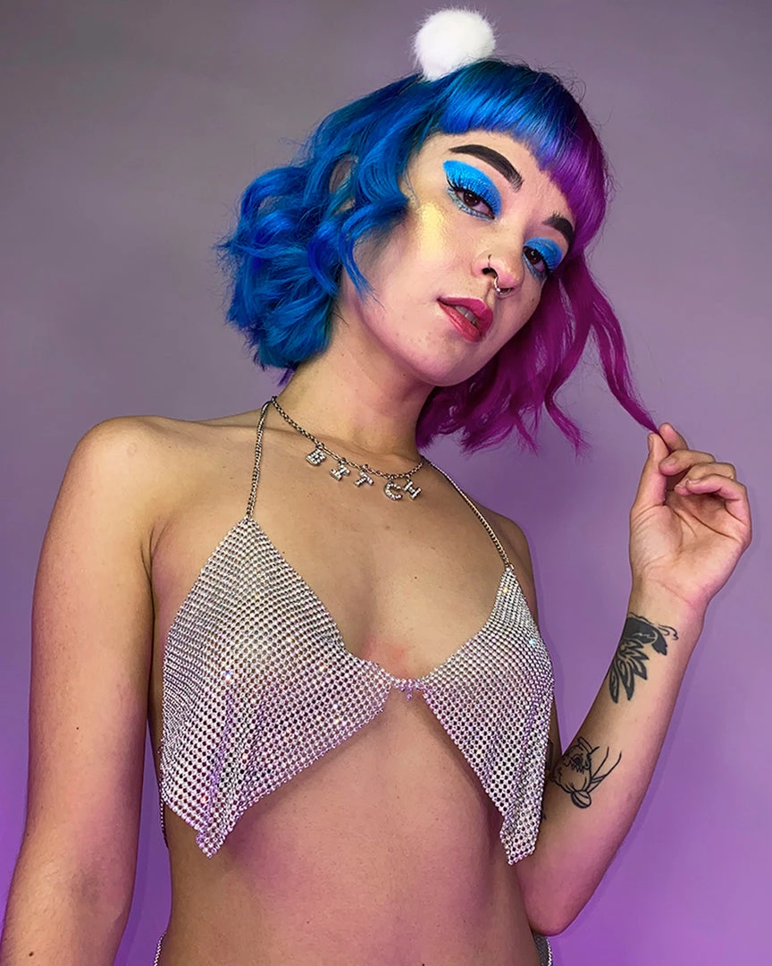 Hengda Torn Apart Bling Rhinestone Bra Top Rave Tops