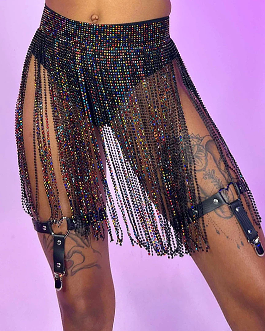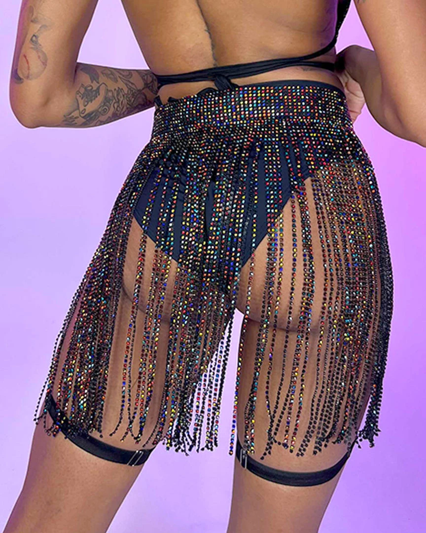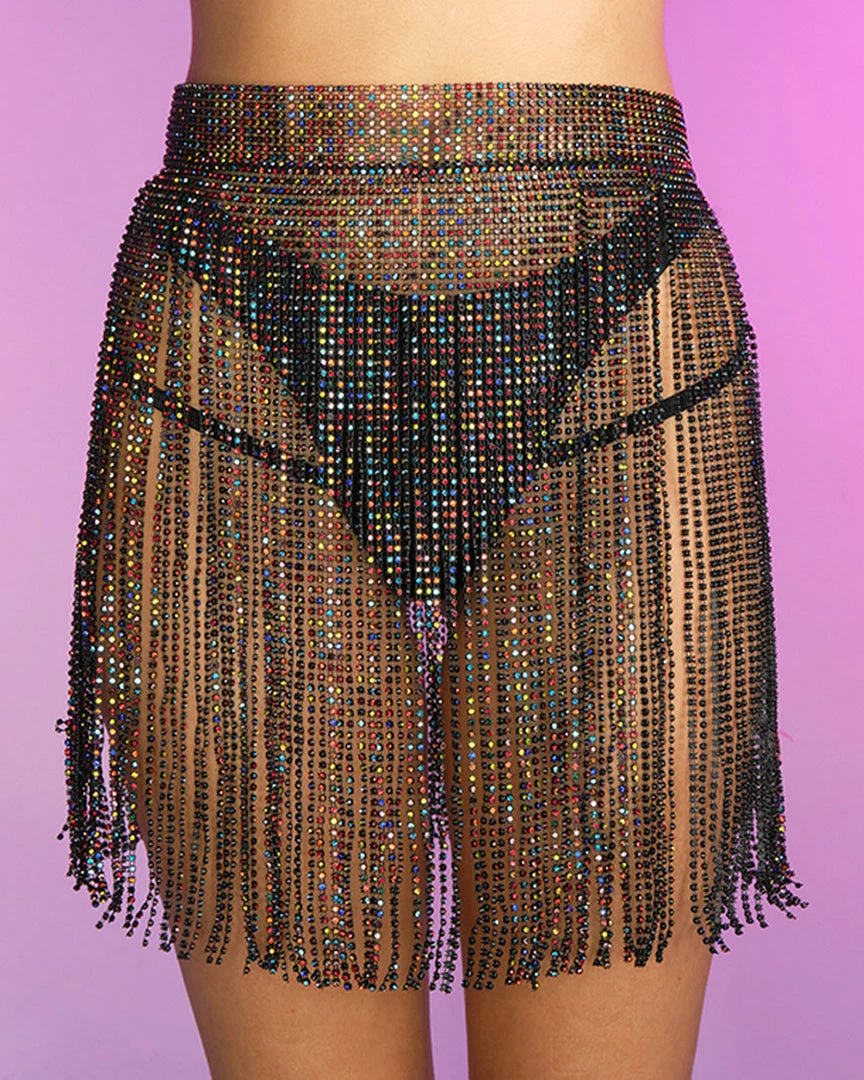 You can wear this beaded skirt with the opening in the front, side, or back! Adjustable Chain Link Closure.