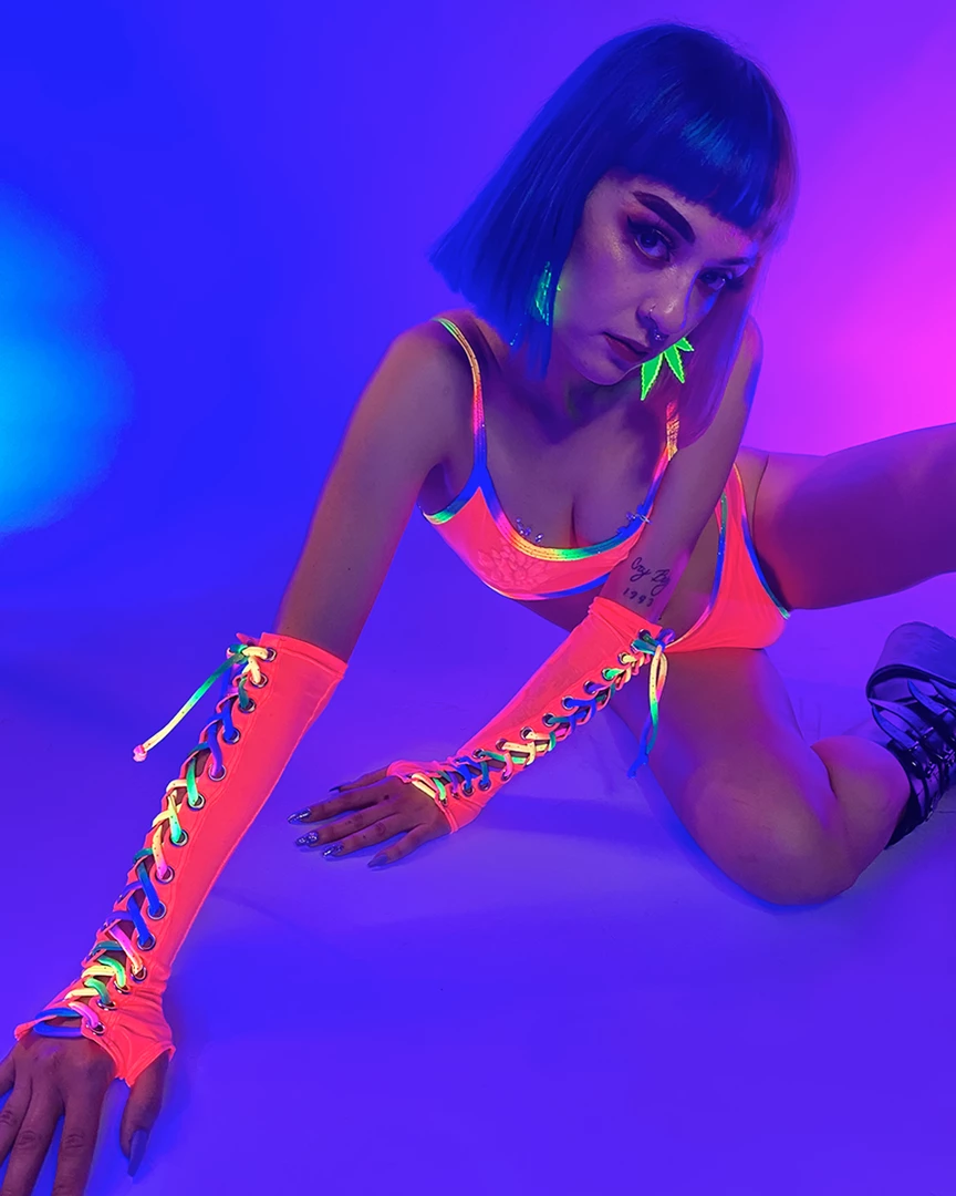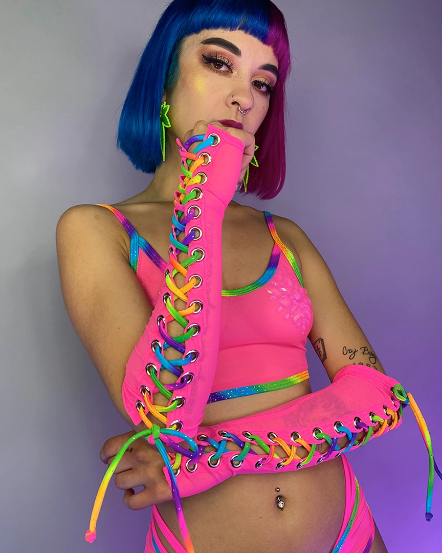 Over The Rainbow Lace Up Mesh Gloves (Pair)
