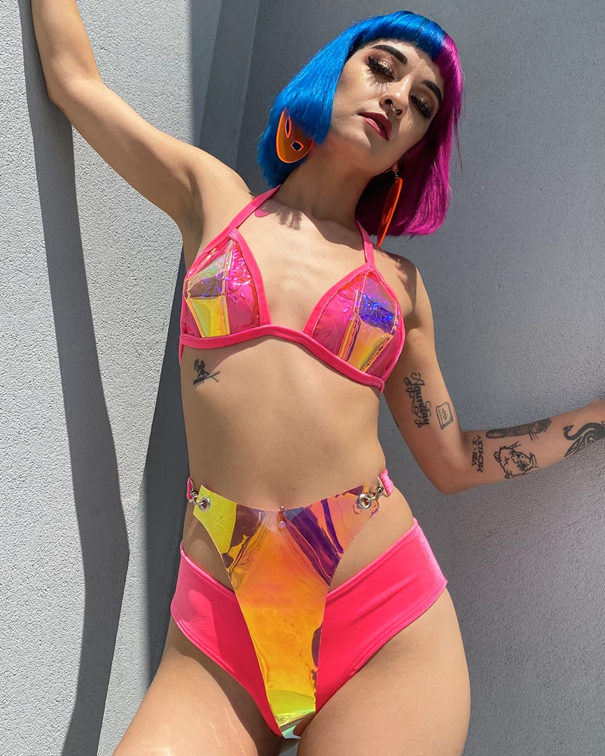 Cyber Prom Holographic Vinyl PVC Overlay Shorts. Includes the Vinyl PVC Overlay and Shorts Pictured Underneath