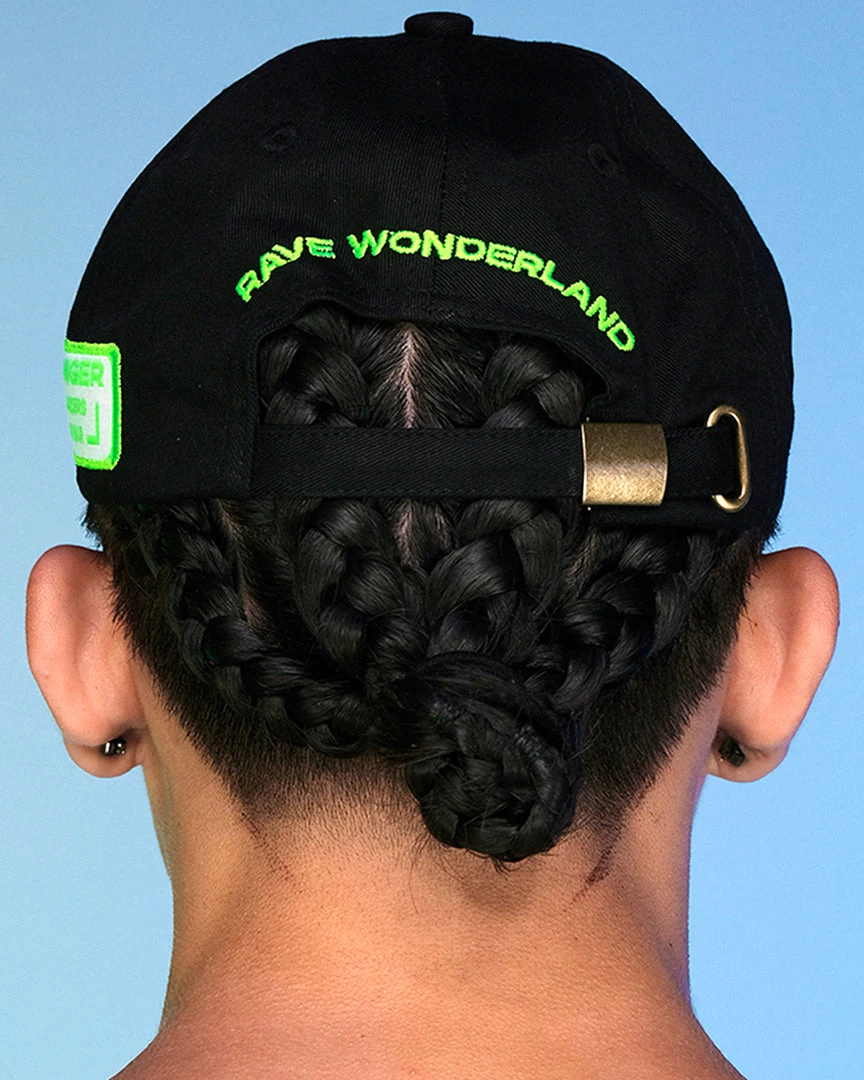 Hardstyle Railrider Green Blacklight Dad Hat with Adjustable Strap.