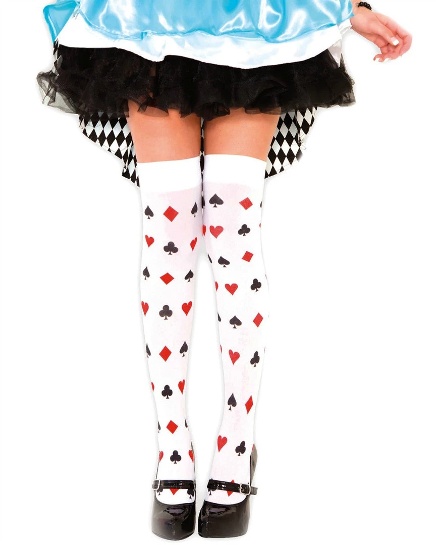 Club Card Pattern Stocking Thigh High. One Size Fits Most (small-large)