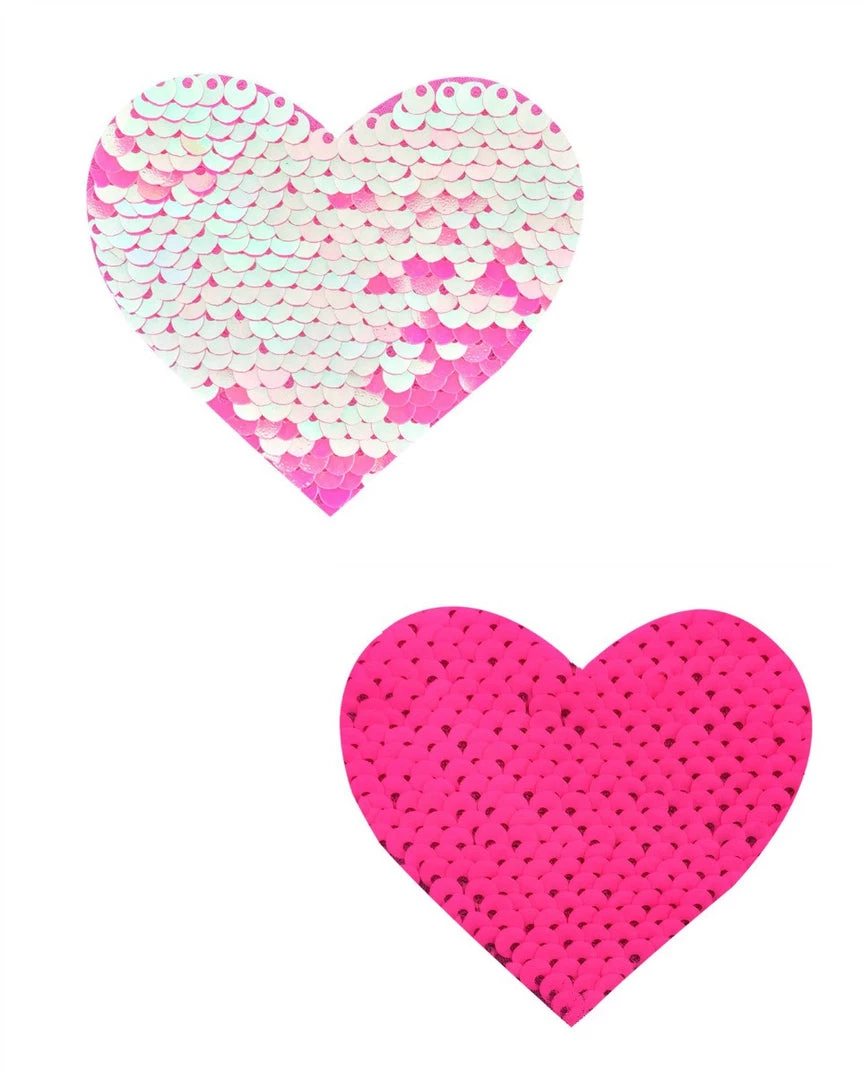Each pack includes 2 heart pasties. Our pasties are great for raves, poolsides, festivals or fashion emergencies. Wear these pasties for evenings out, with daring dresses or to spice up those rave looks! Pastie change from a light shiny pink to a matte pink when touched.