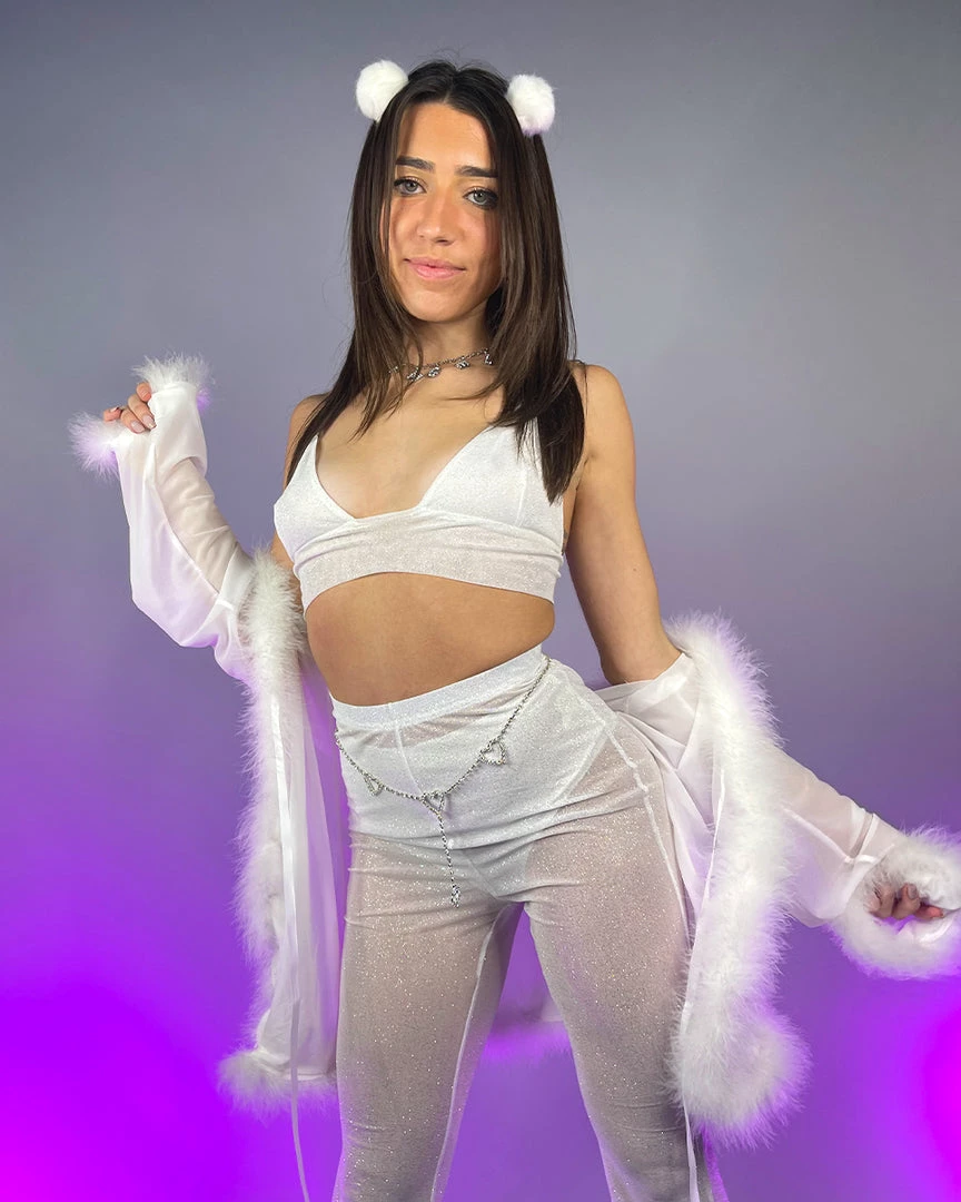 OhYes Fashion Bad Behavior Feather Trim Sheer Robe