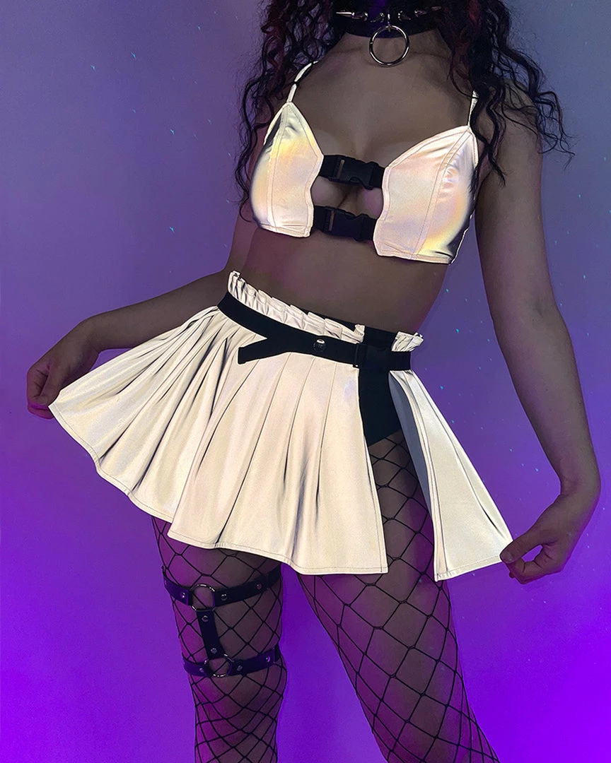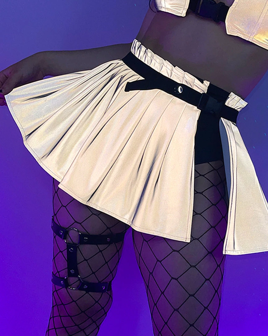 Flashback To Never Buckle Grey Reflective Pleated Skirt