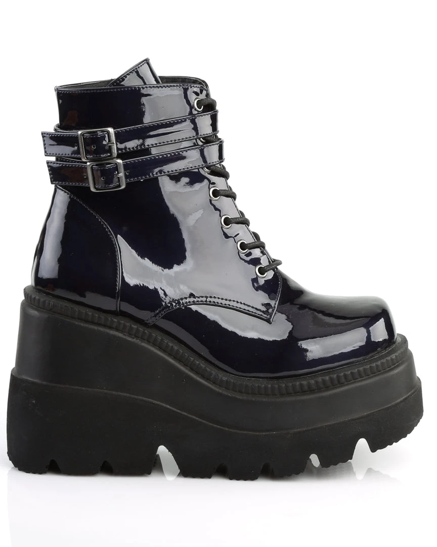 4 1/2″ (114mm) Wedge Platform Lace-Up Front Ankle Boot w/ Double Buckled Ankle Straps, Inside Zip Closure