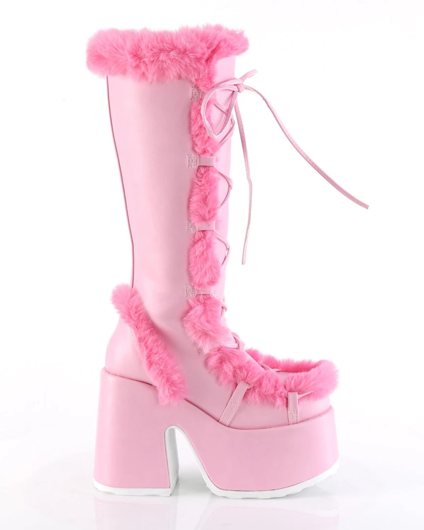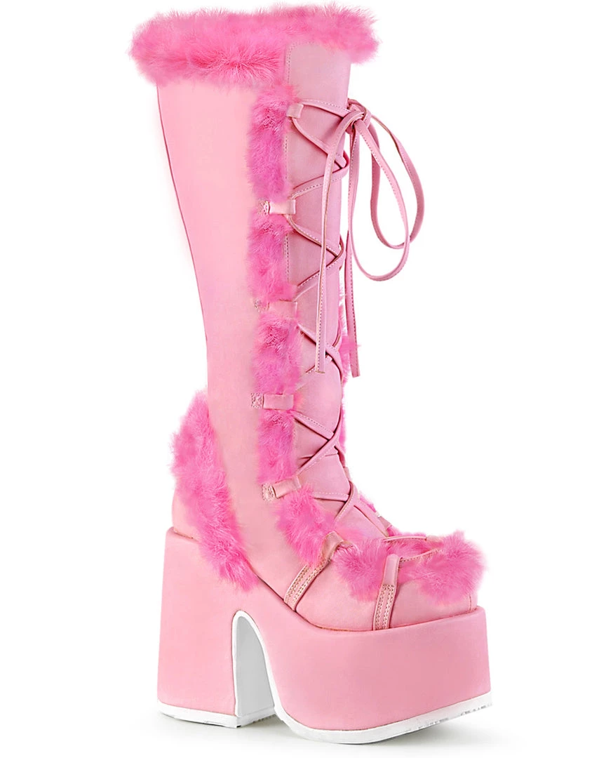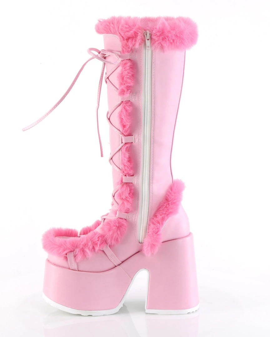 5″ (12.7cm) Platform Goth Punk Gogo Faux Fur Lining and Upper Detail Knee Boot, Full Inner Side Zipper