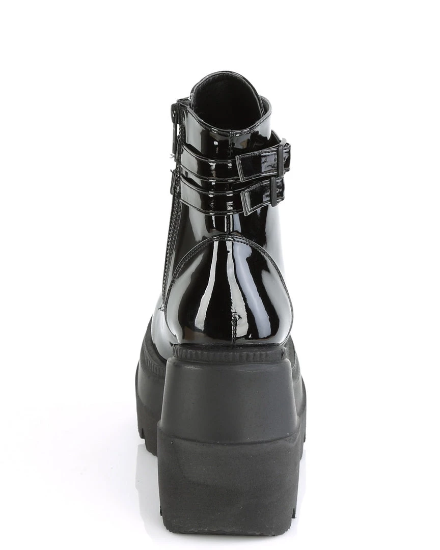 Pleasers Shoes Demonia Black Patent Stacked Platform Ankle Boots
