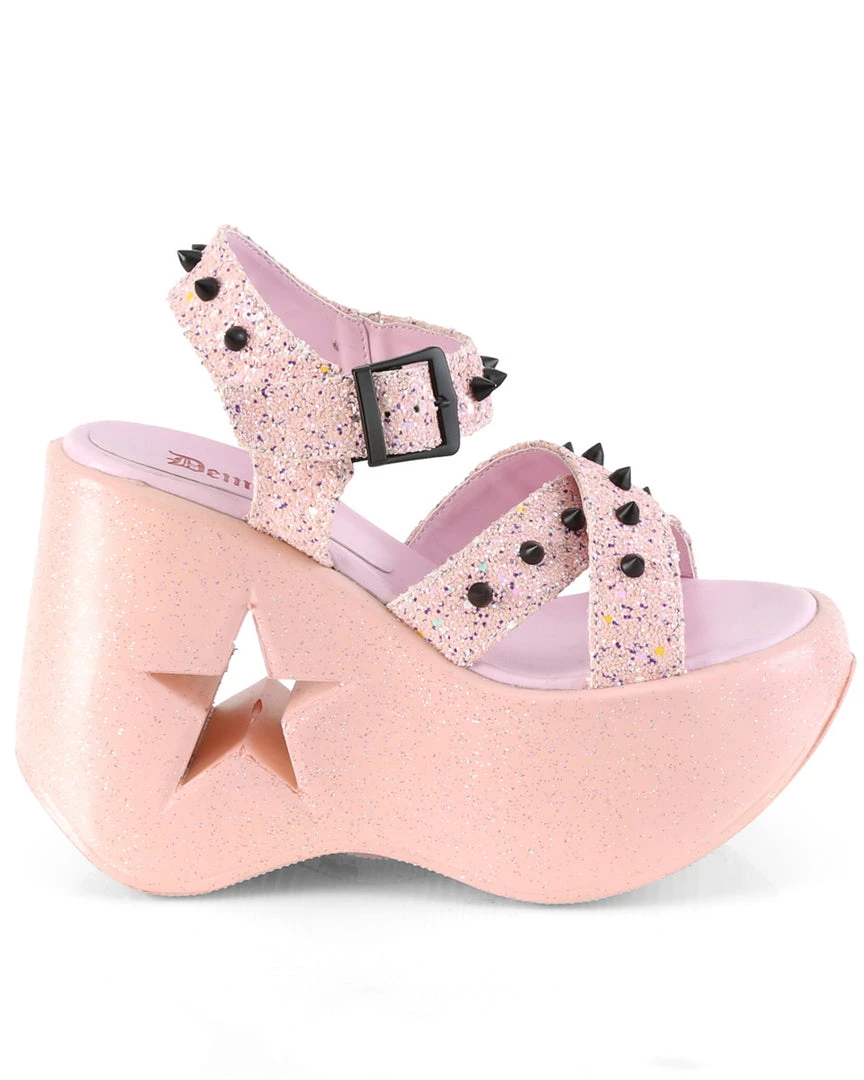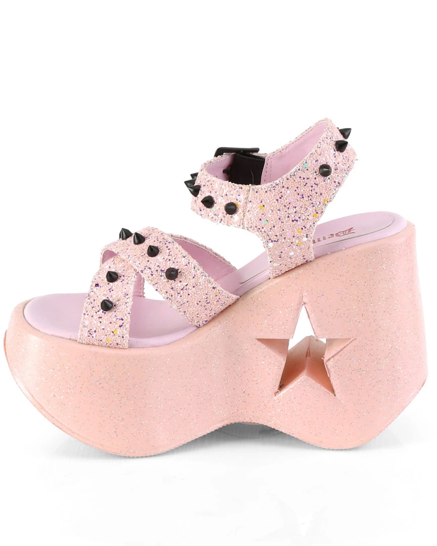 5″ (12.7cm) Star Cutout Platform Wedge Criss Cross Ankle Strap Sandal with Cone Spike Detail