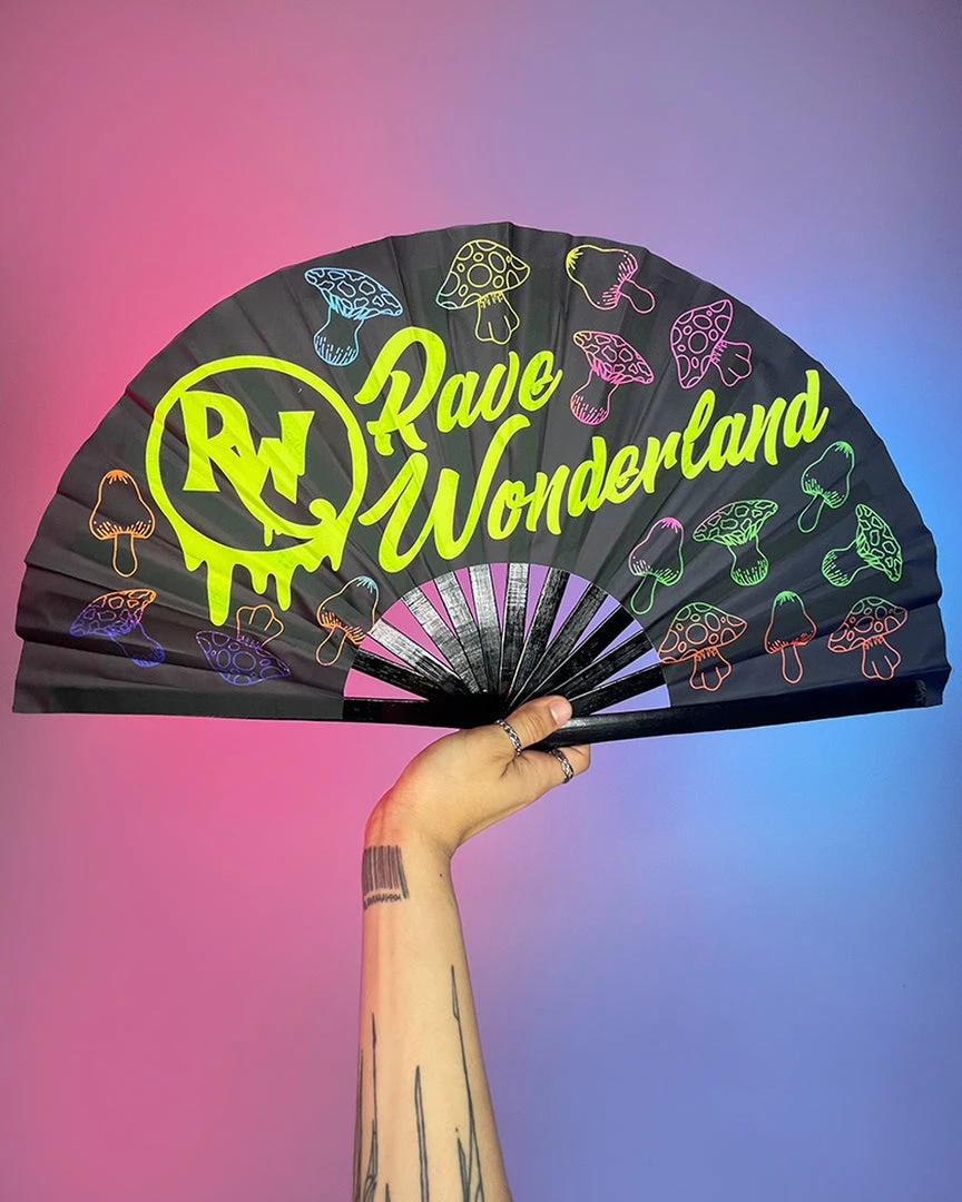 Bring yourself some relief from those hot festivals! Folds neatly to fit any hydration pack! HOLD IT UNDER BLACKLIGHT for even brighter colors!