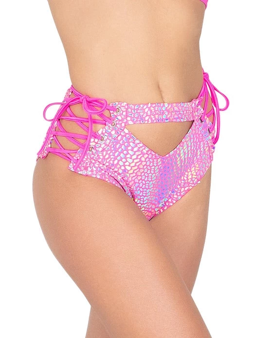 Astro Candy Cutout High Waisted Shorts with Lace-up Detail