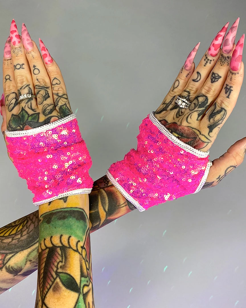 Be the first to review “Roma Astro Candy Open Finger Sequin Gloves” Cancel reply