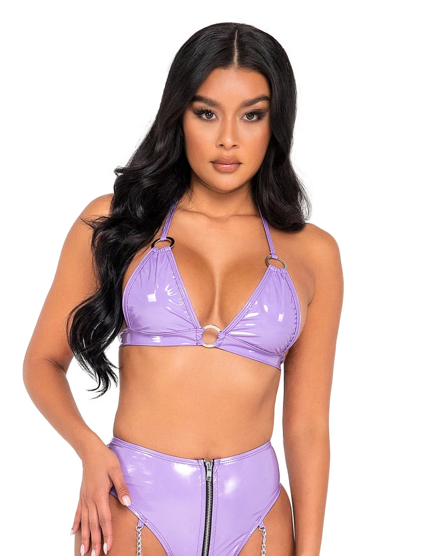 Lavender Vinyl Bikini Tie-Top with Ring Detail