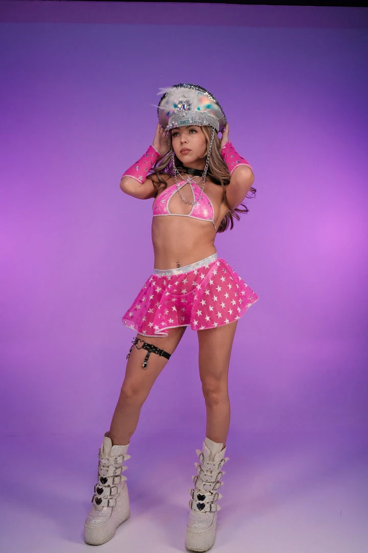 Hot Pink/Silver Cosmic Stardust Stars Bikini Tie-Top with Lining
