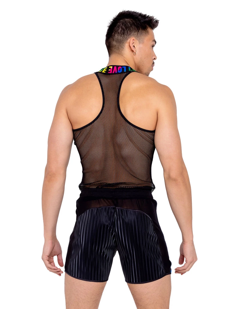 Men’s Pride Fishnet Tank Top with LOVE Elastic Logo