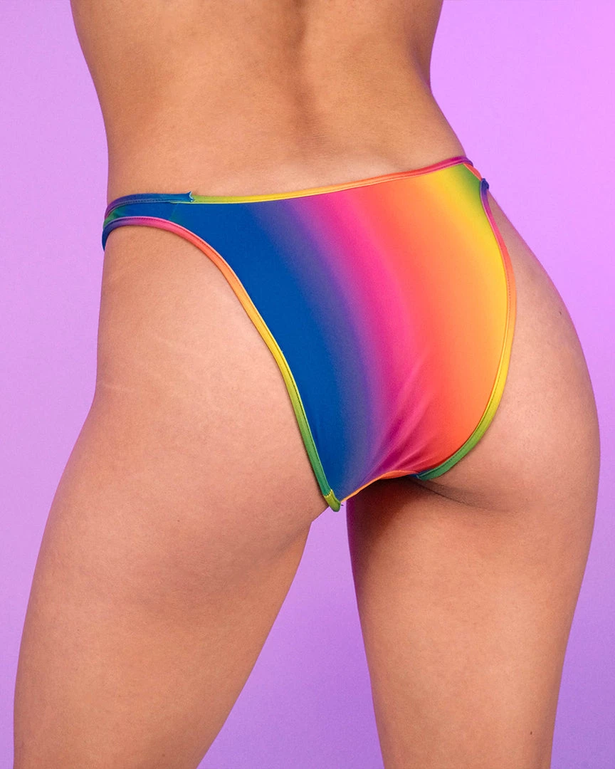 Rainbow Printed High Cut Bottoms. Leg wraps not included.