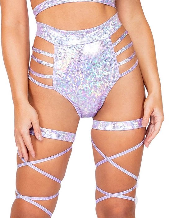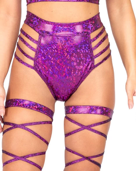 Roma Rave Bottoms Iridescent Side Strapped High Waist Shorts