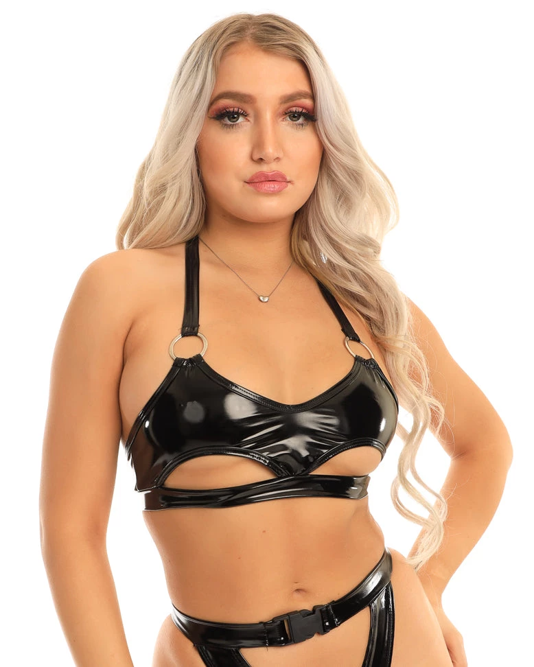 - Vinyl Underboob Cutout and O-Ring Detail Crop Top