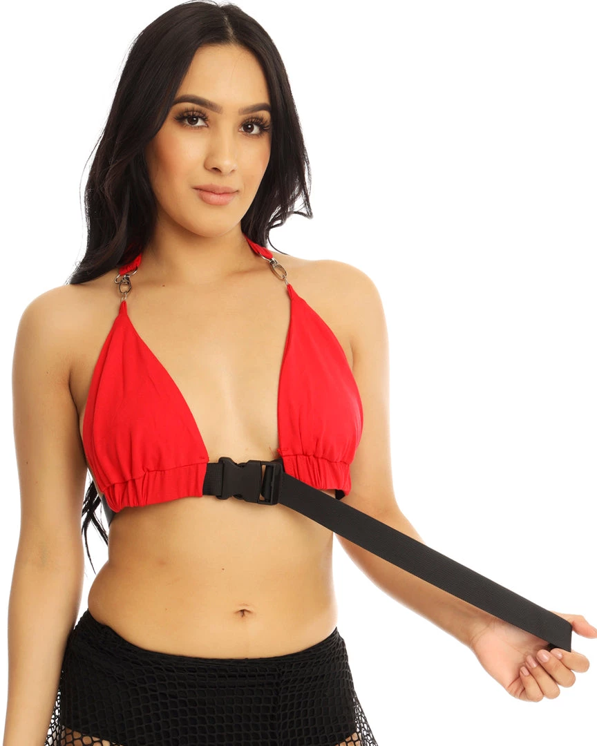 You can wear the buckle in the front or in the back! Features halter tie and adjustable buckle strap. One size fits many!Â