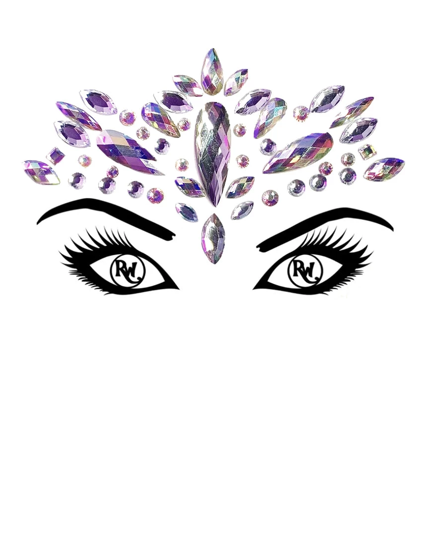 Prearranged rhinestone face jewels with adhesive. Super easy application! Just peel and stick onto desired area. Durable and holds all night while you dance the night away! Apply onto dry skin without makeup.