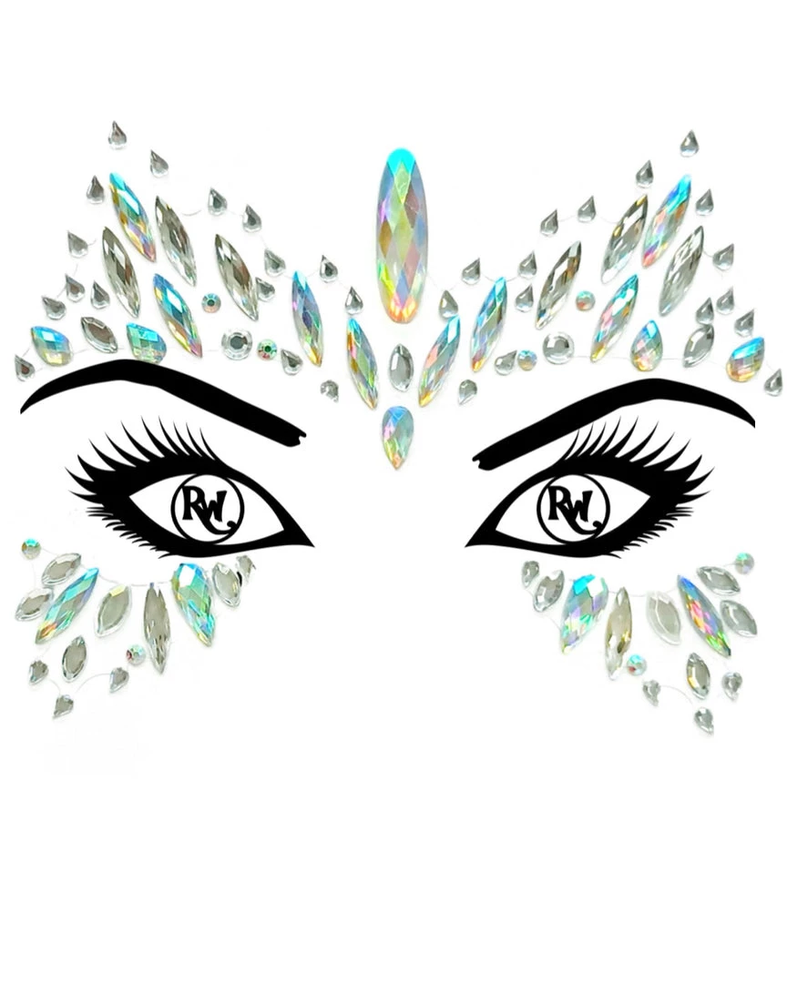 Prearranged rhinestone face jewels with adhesive. Super easy application! Just peel and stick onto desired area. Durable and holds all night while you dance the night away! Apply onto dry skin without makeup.