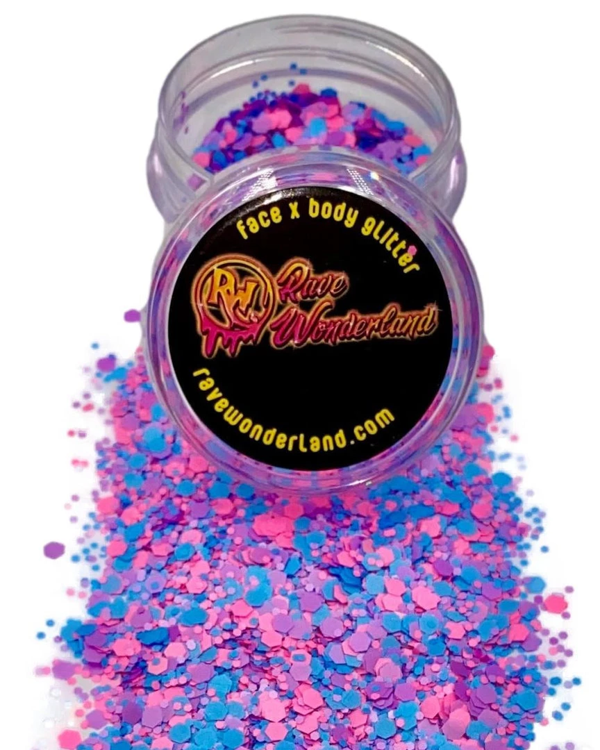 Beautiful chunky iridescent confetti chunky glitter in various shapes and sizes. plenty to cover face and body multiple times over!